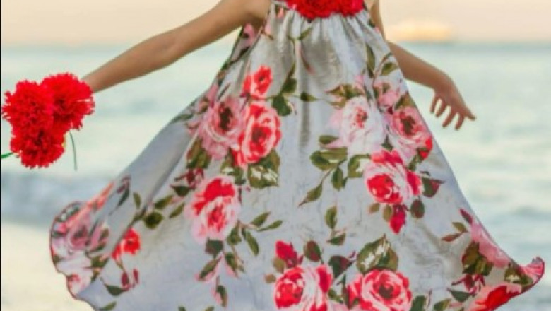 - Dress adorned with flower trim