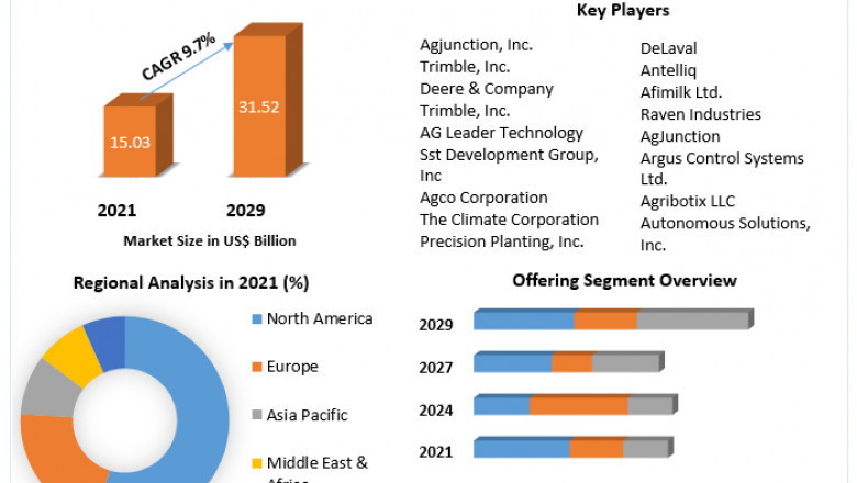 Smart Agriculture Market Size in 2021 was worth US $ 15.03 Bn. at a CAGR of 9.7 % and it is expected to reach US $ 31.52 Bn. in 2029.