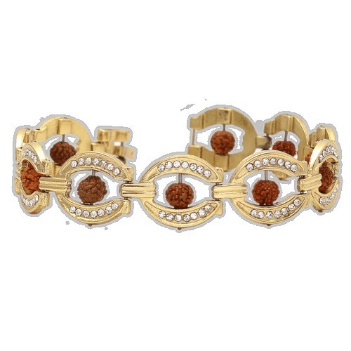 Buy Online 5 Mukhi Rudraksha Bracelet for Men Fashion, Rudraksha Zircon Bracelet made in Gold Plated Brass at best price in India.