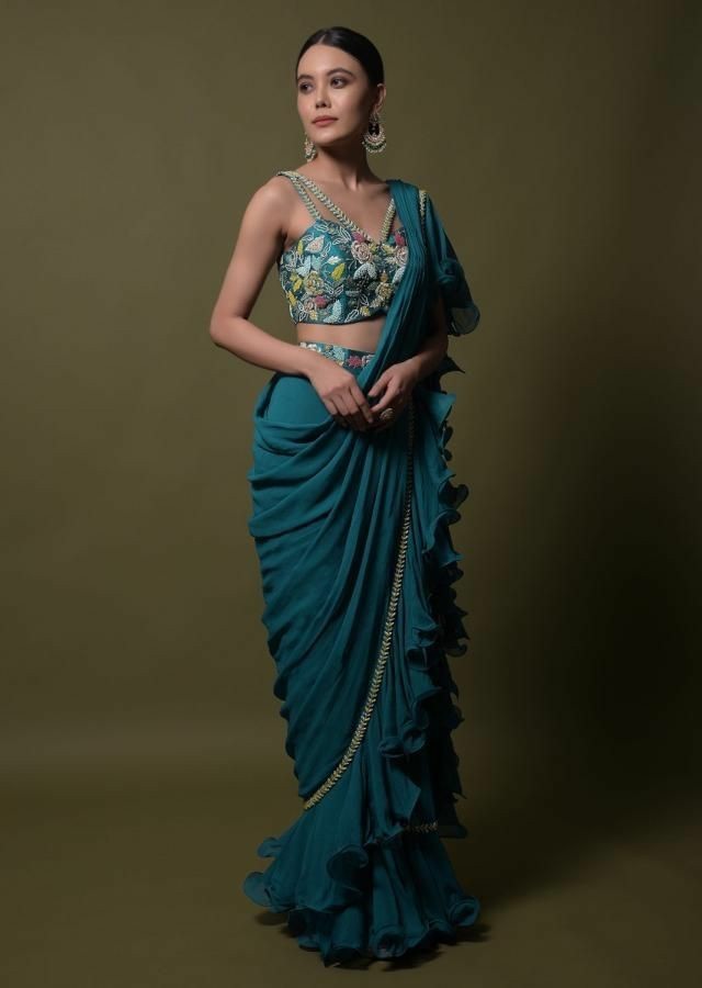 Ruffle Saree is latest trend of traditional Indian saree, now a days every celebrity wear Frill Saree on catwalk and other parties.