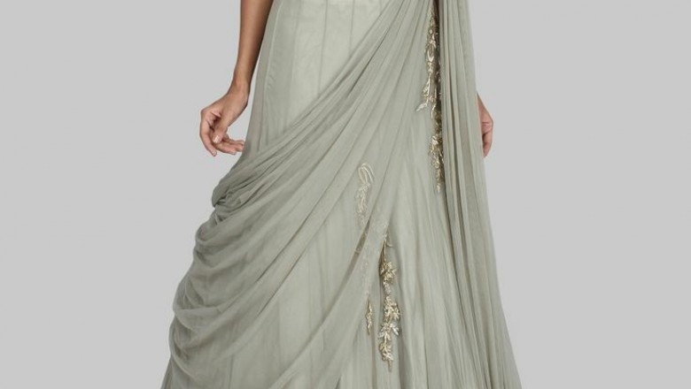 Designer Saree Gown in new designs that are readymade saree that combination of gown and saree that similar to pleated saree and pre stitched saree gown. today we want to easy to carry dress with looks different so you must try draped saree gown. and concept saree also a best option for cocktail parties.