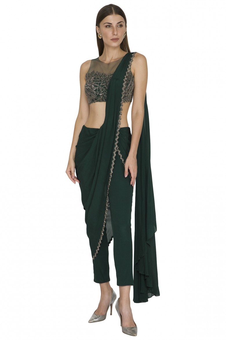 Buy designer dhoti saree and plazo saree from Fresh Look Fashion. They have large variety of pant saree, sharara saree, dhoti style saree buy online and dhoti saree designs.