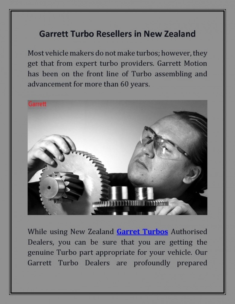 Local Business Garrett Turbos Authorised Resellers in New Zealand garrettturbos 1,663 views Find your closest Garrett Turbos Authorised Resellers? « Previous NZ garrett turbos garrett turbos nz