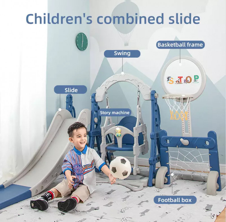 Découvrez notre Offre Exclusive au Maroc :Toboggan balançoire Jouet pour enfants + parc de jeux sportif Parc 6 en 1 Pour intérieur et extérieur , réglable en hauteur, avec panier de Basket, foot et lance Anneaux