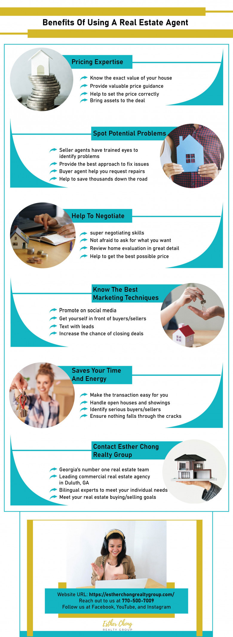 Here are the significant benefits of hiring a real estate agent when buying or selling a property. At our real estate agency in Duluth, GA, we provide bilingual experts to guide you through the process and achieve your unique real estate goals. Visit https://estherchongrealtygroup.com/ for more information.
