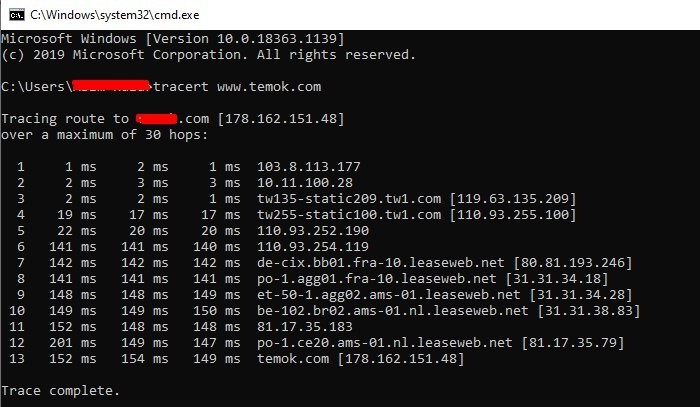 Go to command prompt (cmd), write “tracert” and enter any domain name after a single space as you can view in the picture given below: