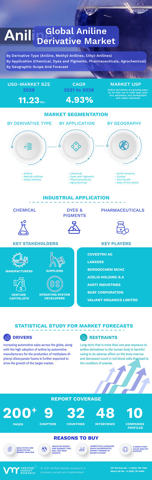 News Aniline Derivative Market Size By Derivative Type smithjenny22119 940 views Aniline Derivative Market size was valued at USD 7.38 Million in 2020 and is projected to reach USD 11.23 Million by 2028 « Previous Aniline Derivative Market