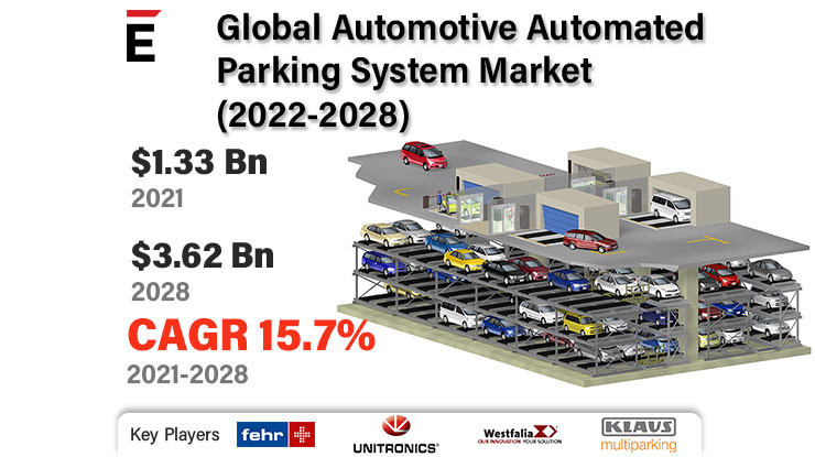The global Automotive Automated Parking System Market is projected to grow from USD 1.33 billion in 2020 to USD 3.62 billion by 2028 at a CAGR of 15.79% during the forecast period. The Automated Parking System manages parking in order to reduce the amount of space needed for parking. The automated parking mechanism is a system that reduces the amount of parking space necessary. The Automated Parking System is used to construct multi-story parking structures that enhance the number of parking spaces while lowering the amount of land required for parking lots. Parking structures that stack cars vertically to save space are known as Automatic Parking Systems (APS). These one-of-a-kind technologies are designed to transfer vehicles from their entry to their parking location without the need for the driver to be present.