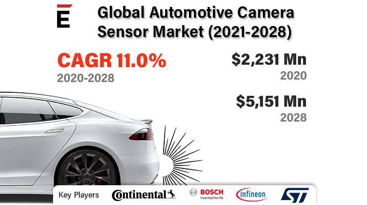 The global Automotive Camera Sensor Market is projected to grow from USD 2231.02 million in 2020 to USD 5151.04 million by 2028 at a CAGR of 11.0% during the forecast period. Hybrid electric car usage is expected to increase industry demand. The growth can be attributed to rising concern and awareness about the pollution caused by greenhouse gases released by internal combustion engine automobiles.