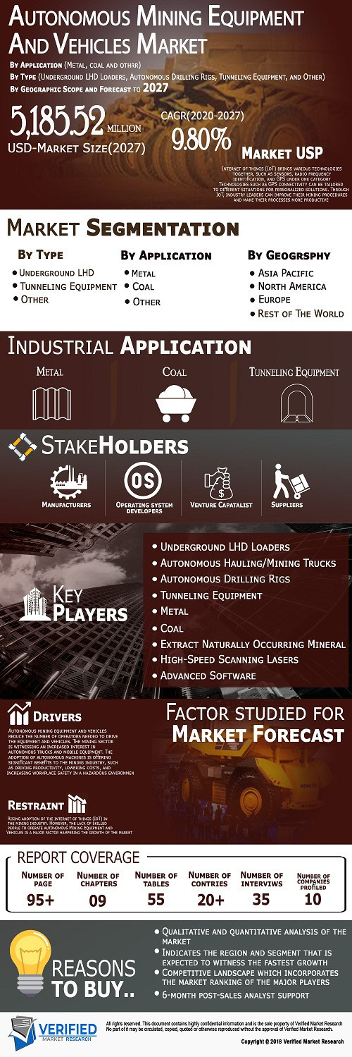 News Autonomous Mining Equipment and Vehicles Market Size By Application, By Type smithjenny22119 1,017 views Autonomous Mining Equipment and Vehicles Market was valued at USD 2,694.5 Million in 2019 and is projected to reach USD 5,185.52 Million by 2027, growing at a CAGR of 9.80% from 2020 to 2027. « Previous Autonomous Mining Equipment and Vehicles Market