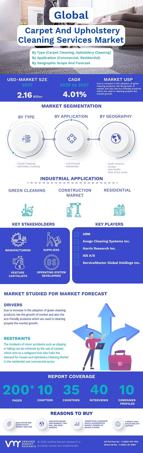News Carpet And Upholstery Cleaning Services Market Size By Type, By Application smithjenny22119 732 views Carpet and Upholstery Cleaning Services Market was valued at USD 1.58 Billion in 2019. « Previous Carpet And Upholstery Cleaning Services Market