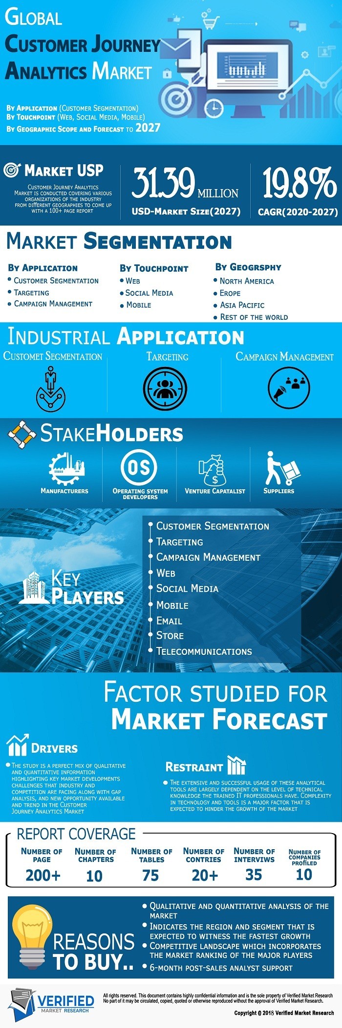 Customer Journey Analytics Market was valued at USD 7.34 Billion in 2019 and is projected to reach USD 31.39 Billion by 2027, growing at a CAGR of 19.8% from 2020 to 2027.