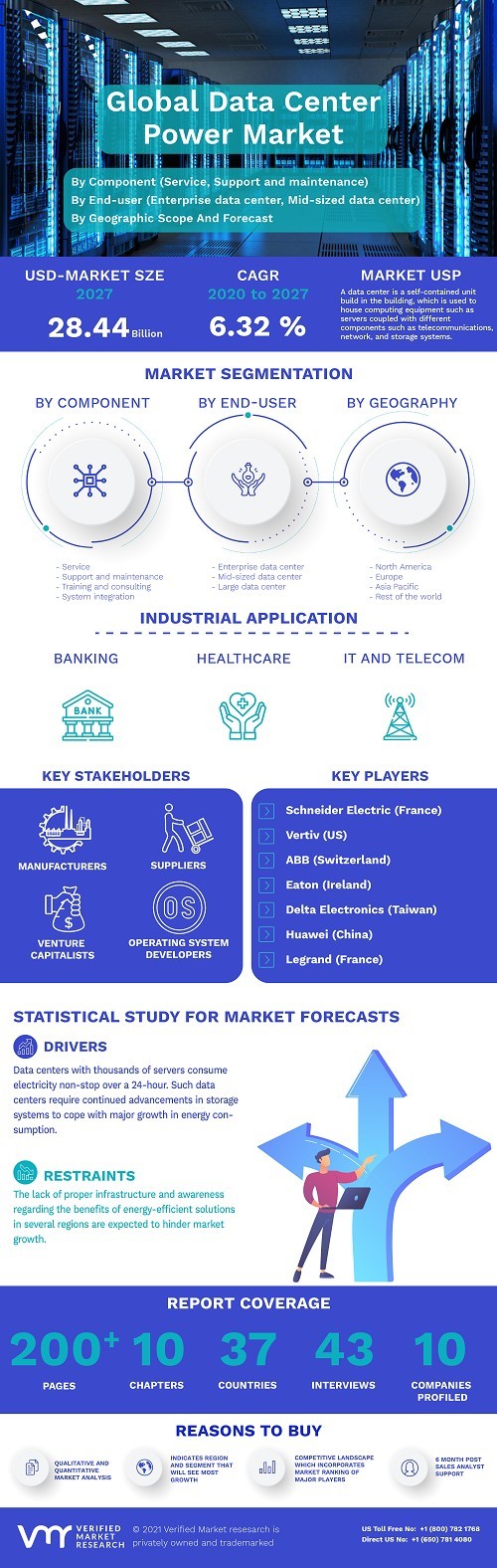 News Data Center Power Market By Component, By Vertical, By End-User, By Geography And Forecast smithjenny22119 1,112 views Data Center Power Market was valued at USD 17.44 Billion in 2019 and is projected to reach USD28.44 Billion by 2027, growing at a CAGR of 6.32 % from 2020 to 2027. « Previous Data Center Power Market