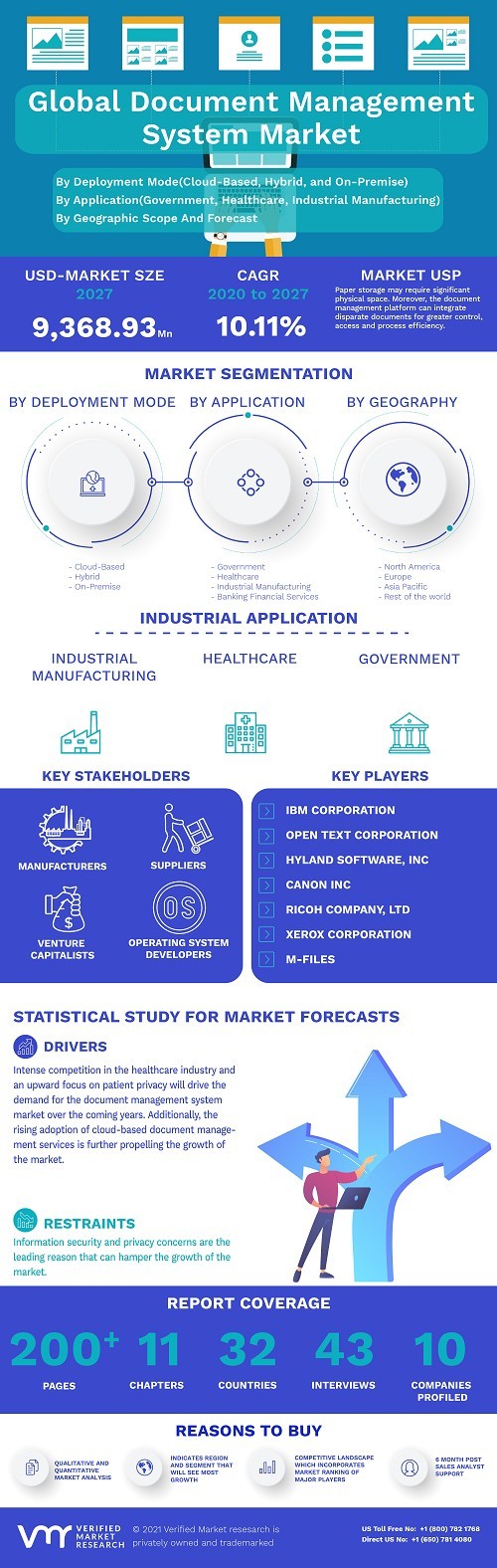 News Document Management System Market Size By Offering(Services and Solutions), By Organization smithjenny22119 1,915 views Document Management Systems Market was valued at USD 4,410.72 Million in 2019 and is projected to reach USD 9,368.93 Million by 2027, growing at a CAGR of 10.11% from 2020 to 2027. « Previous Document Management System Market