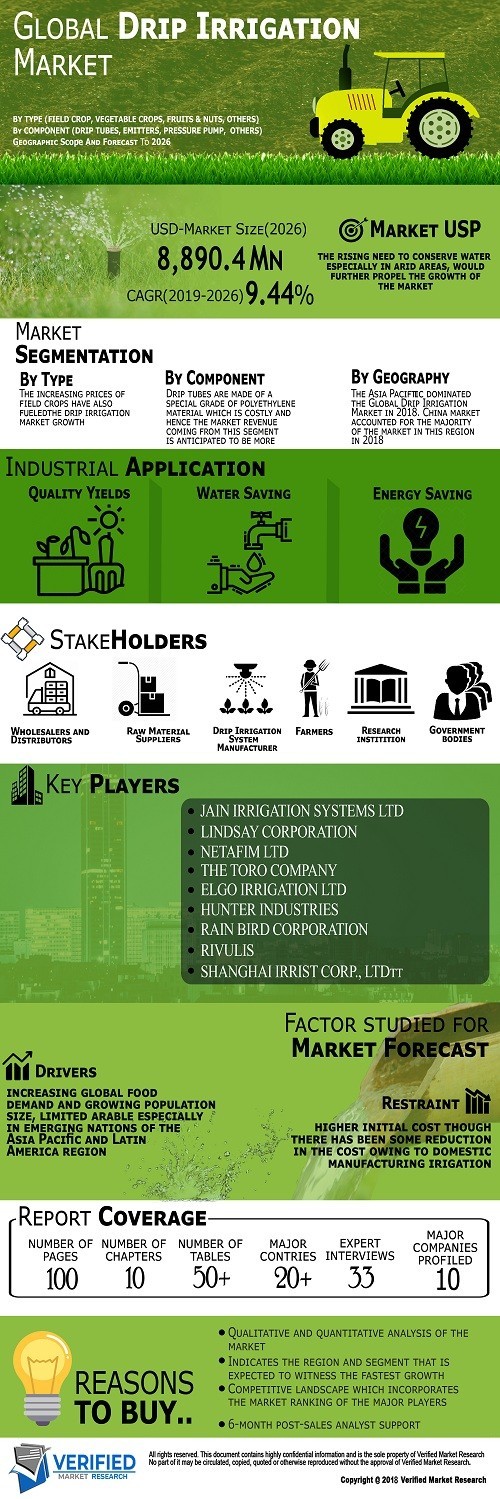 According to Verified Market Research, The Global Drip Irrigation Market was valued at USD 4.69 billion in 2019 and is projected to reach USD 10.77 billion by 2027, growing at a CAGR of 11.80% from 2020 to 2027.