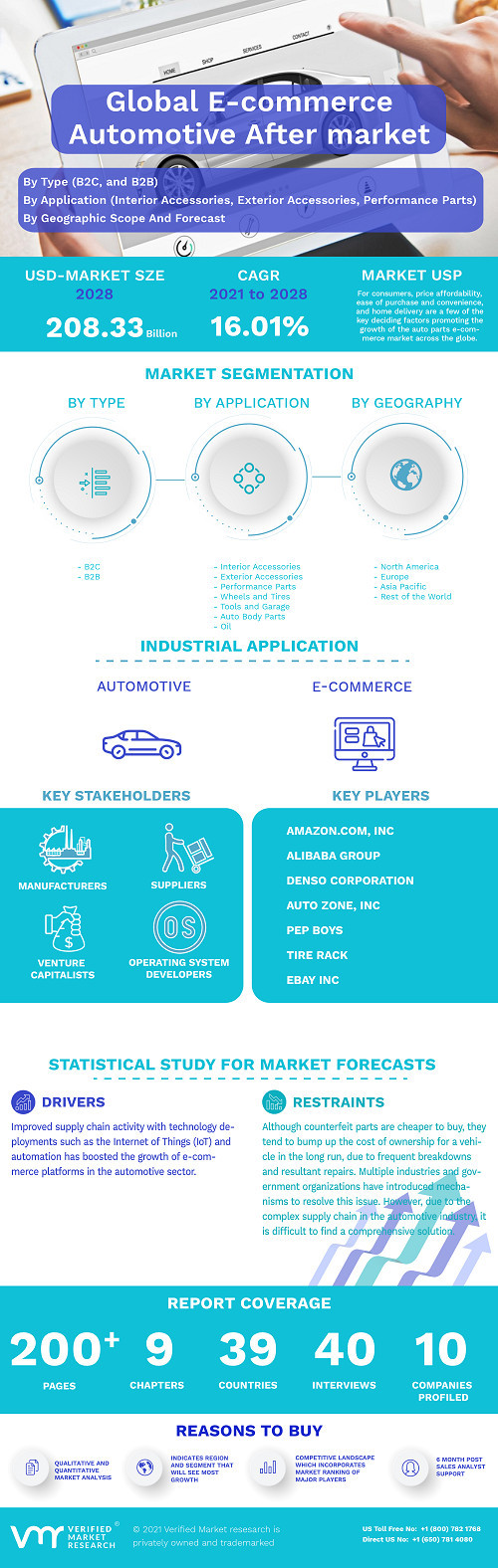 News E-commerce Automotive Aftermarket Size By Type (B2C, and B2B), By Application smithjenny22119 828 views E-Commerce Automotive Aftermarket size was valued at USD 73.68 Billion in 2020 and is projected to reach USD 208.33 Billion by 2028. « Previous E-commerce Automotive Aftermarket