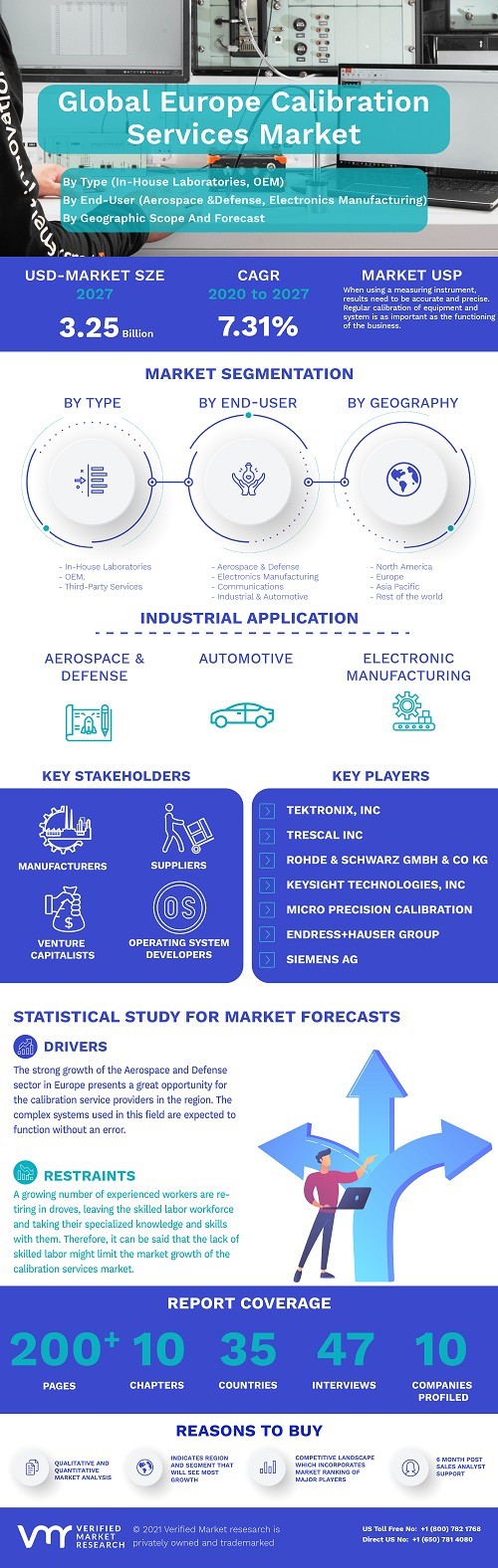 News Europe Calibration Services Market Type smithjenny22119 737 views Europe Calibration Services Market was valued at USD 1.86 Billion in 2019 and is projected to reach USD 3.25 Billion by 2027, growing at a CAGR of 7.31% from 2020 to 2027. « Previous Europe Calibration Services Market