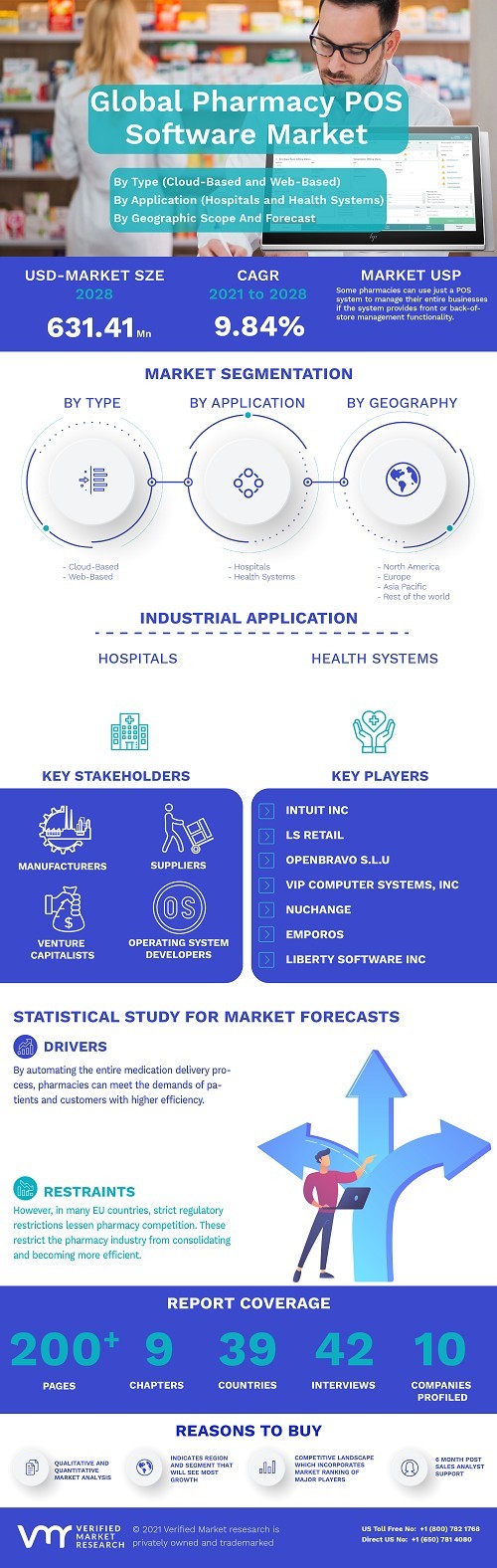 News Europe Pharmacy POS Software Market Size By Type (Cloud-Based and Web-Based), By Application (Hospitals and Health Systems) smithjenny22119 940 views Europe Pharmacy POS Software Market size was valued at USD 327.42 Million in 2020 and is projected to reach USD 631.41 Million by 2028, growing at a CAGR of 9.84% from 2021 to 2028. « Previous Europe Pharmacy POS Software Market