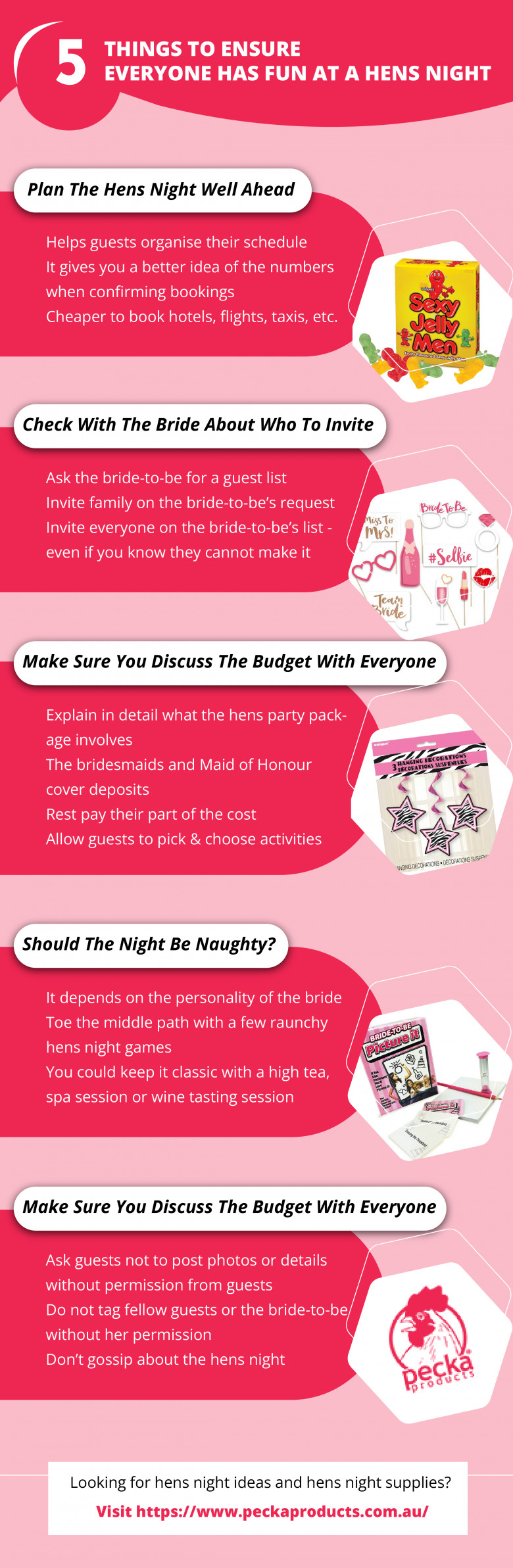 Whom to invite for the hens night? Who pays for the night supplies & decorations? Find answers to questions such as these and more here. And to buy affordable hens night supplies, visit https://www.peckaproducts.com.au/