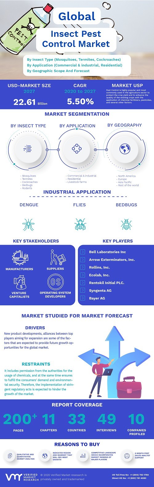 News Insect Pest Control Market Size By Insect Type, By Application, By Control Method, By Geographic Scope smithjenny22119 1,299 views Insect Pest Control Market was valued at USD 15.53 Billion in 2020 and is projected to reach USD 22.61 Billion by 2027, growing at a CAGR of 5.50% from 2021 to 2027. « Previous Insect Pest Control Market