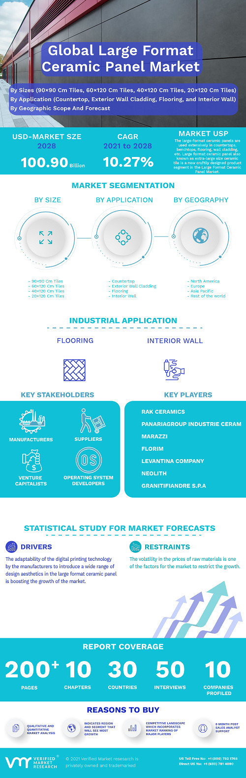 News Large Format Ceramic Panel Market Size By Thickness, By Application, By Sizes, By Geographic Scope And Forecast smithjenny22119 1,330 views Large Format Ceramic Panel Market was valued at USD 46.15 Billion in 2020 and is projected to reach USD 100.90 Billion by 2028. « Previous Large Format Ceramic Panel Market