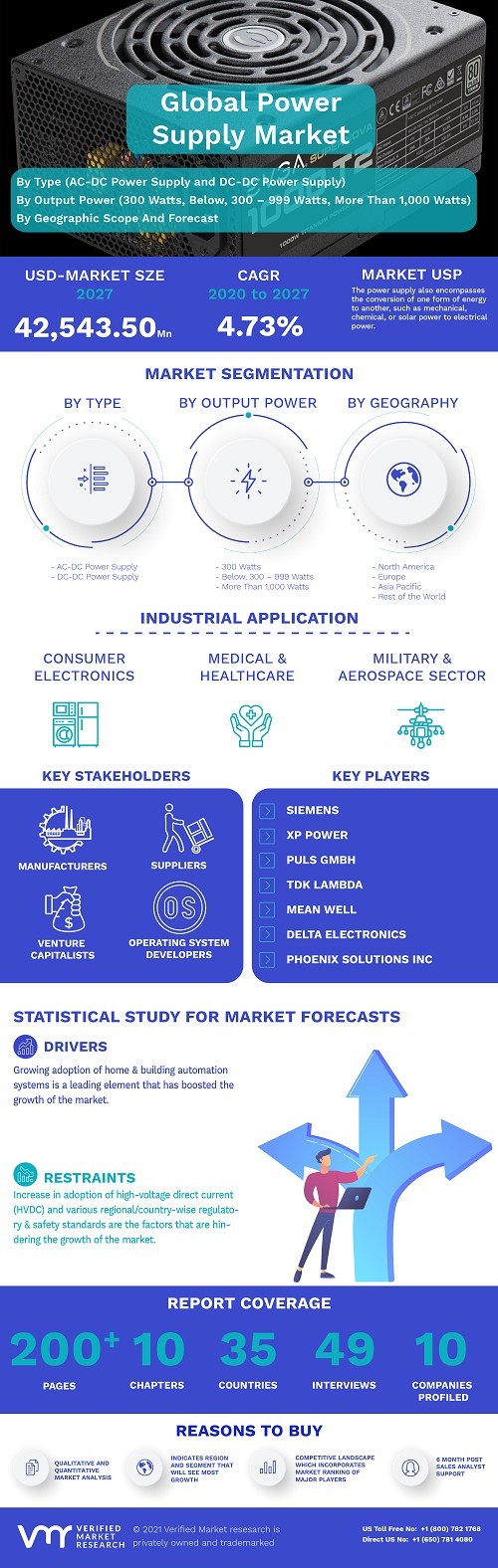 News Power Supply Market Size By Output Power (300 Watts and Below, 300 – 999 Watts, and More Than 1,000 Watts. More Than 1,000 Watts) smithjenny22119 1,506 views Power Supply Market was valued at USD 29,578.96 Million in 2019 and is projected to reach USD 42,543.50 Million by 2027, at a long-term CAGR of – 4.73% from 2020 to 2027. « Previous Power Supply Market