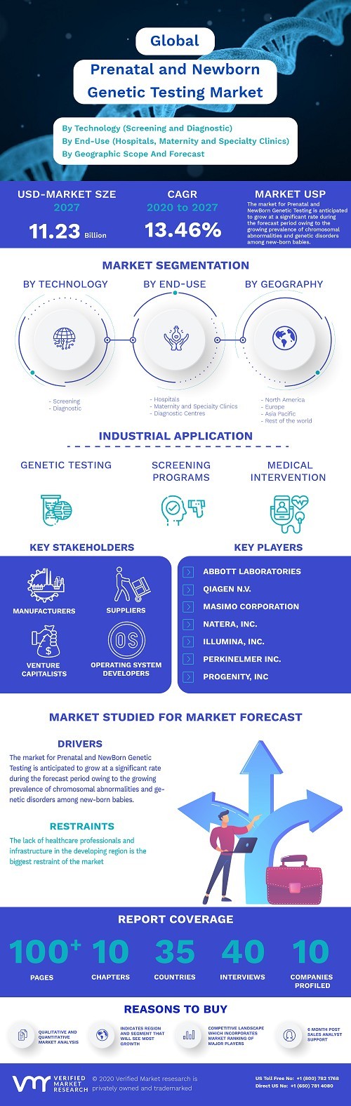 News Prenatal and Newborn Genetic Testing Market smithjenny22119 1,073 views Prenatal and Newborn Genetic Testing Market was valued at USD 4.17 Billion in 2019 and is projected to reach USD 11.23 Billion by 2027, growing at a CAGR of 13.46% from 2020 to 2027. « Previous Prenatal and Newborn Genetic Testing Market