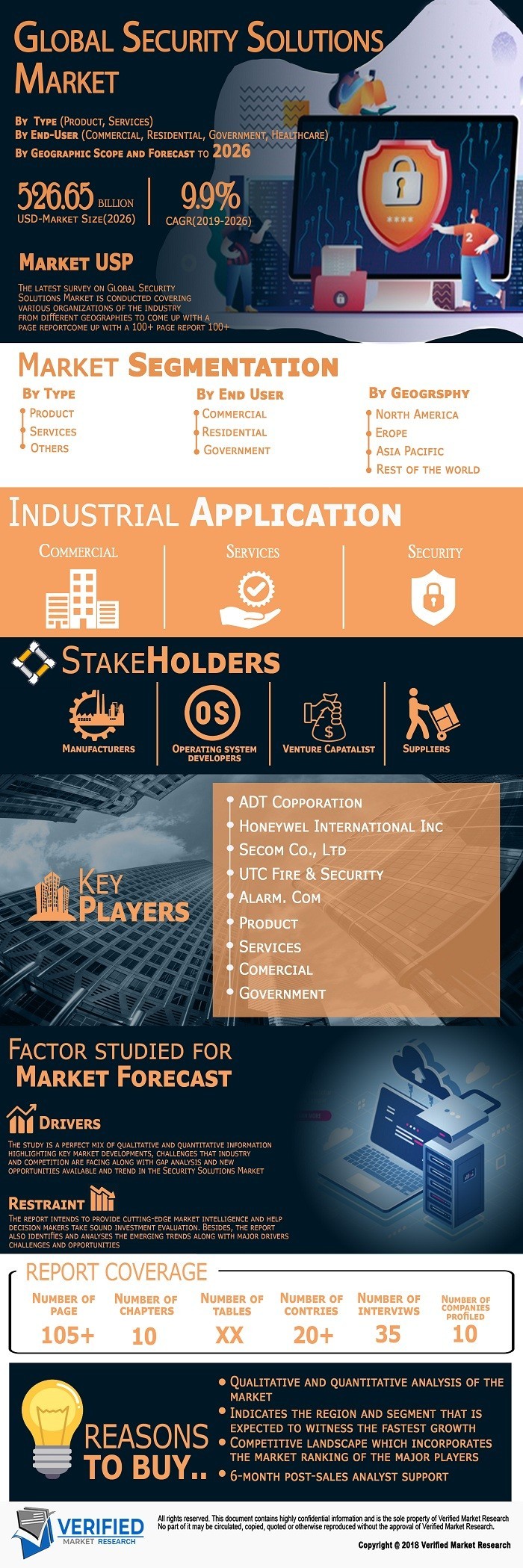 Global Security Solutions Market was valued at USD 252.77 Billion in 2018 and is projected to reach USD 526.65 Billion by 2026, growing at a CAGR of 9.9% from 2019 to 2026.