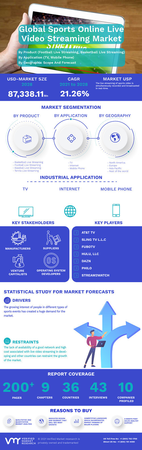 News Sports Online Live Video Streaming Market Size By Product, By Application (TV, Mobile Phone, and Other), By Geographic Scope And Forecast smithjenny22119 824 views Sports Online Live Video Streaming Market was valued at USD 18,119.35 Million in 2020 and is projected to reach USD 87,338.11 Million by 2028. « Previous Sports Online Live Video Streaming Market