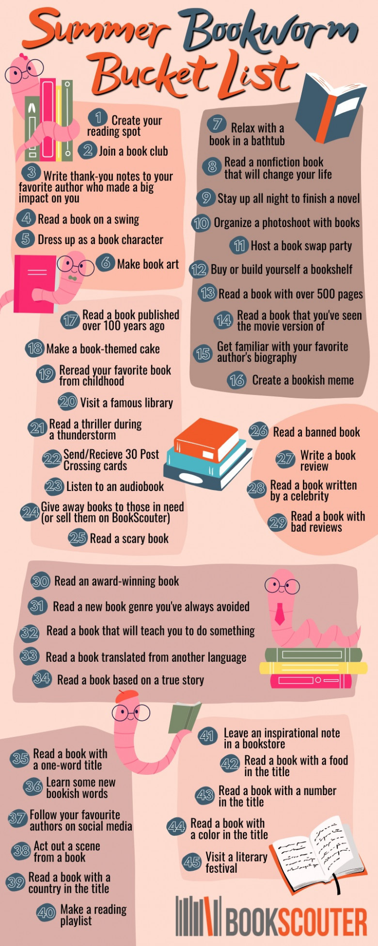 While you may have a huge pile of books you’re planning to read this summer, think about adding some book-related activities to your bucket list too. No worries! BookScouter has done everything for you. Fellow book lovers, check out this Summer Bookworm Bucket List we’ve prepared for you. Here you’ll find a bunch of fun activities, challenges, tasks, and it’s all tied to BOOKS.