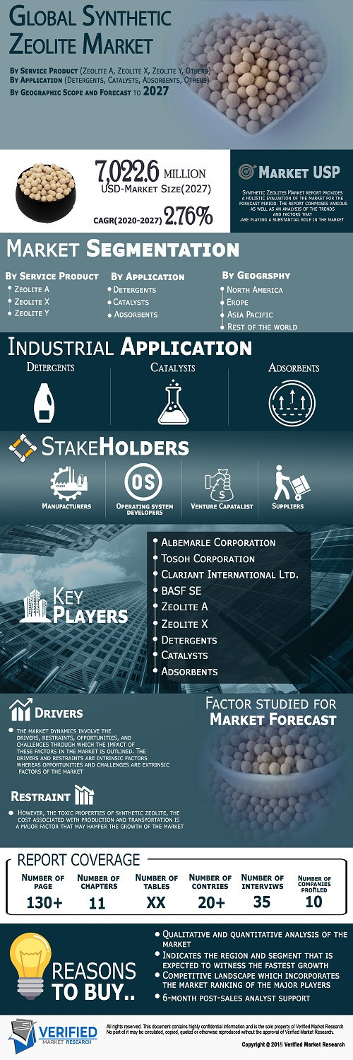 News Synthetic Zeolite Market Size By Service Product, By Application, By Geography smithjenny22119 1,200 views Synthetic Zeolites Market was valued at USD 5,639.7 Million in 2019 and is projected to reach USD 7,022.6 Million by 2027, growing at a CAGR of 2.76% from 2020 to 2027. « Previous Synthetic Zeolite Market