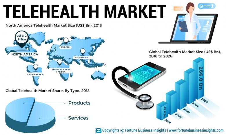 The “Telehealth Market” is likely to expand considerably with impetus from the ability of telehealth to serve the rural population. According to a report published by Fortune Business Insights, titled “Telehealth: Global Market Analysis, Insights, and Forecast, 2019-2026,” The Global Telehealth Market was valued at US$ 49.8 Bn in 2018. Fortune Business Insights has predicted that the market will reach US$ 266.8 Bn by 2026, thereby exhibiting a CAGR of 23.4%.