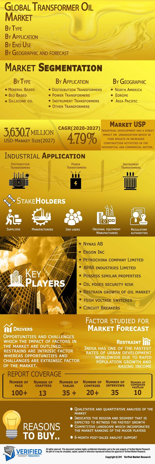 News Transformer Oil Market By Type, By Application, By End Use, By Geographic Scope smithjenny22119 1,085 views Transformer Oil Market was valued at USD 2,556 Million in 2019 and is projected to reach USD 3,630.7 Million by 2027, growing at a CAGR of 4.79% from 2020 to 2027. « Previous Transformer Oil Market