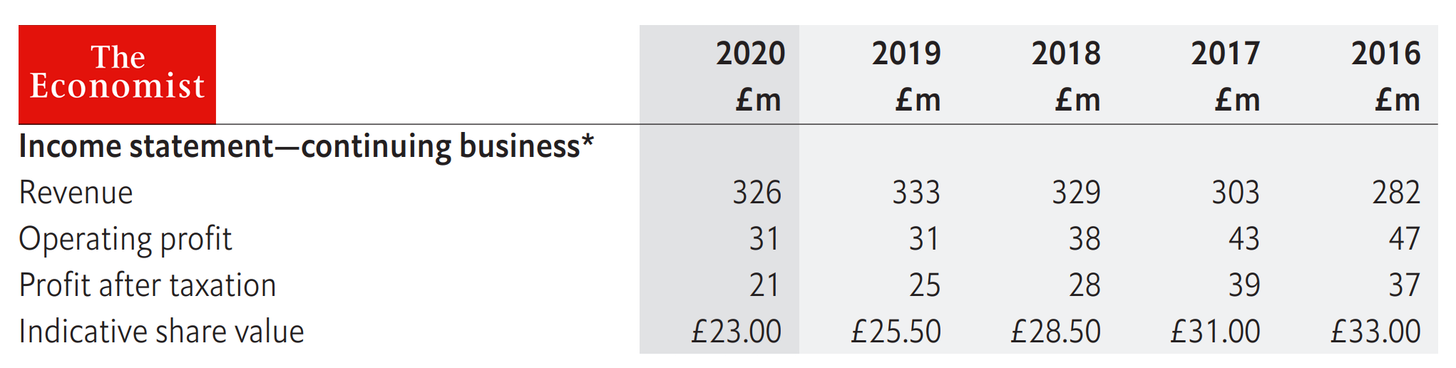Perhaps the most glorious achievements in Sudhir Thomas’s life time, was writing for The Economist, a few years ago. Funny enough, Sudhir Thomas even mentioned The Economist as a better managed media outlet compared with the Straits Times. Has Sudhir Thomas intentionally ignored the fact that The Economist is a business weekly, and NOT a general news daily? Or has he not bothered (like many times before) to find out that The Economist’s profits have been dropping faster than pigeon droppings since 2017?