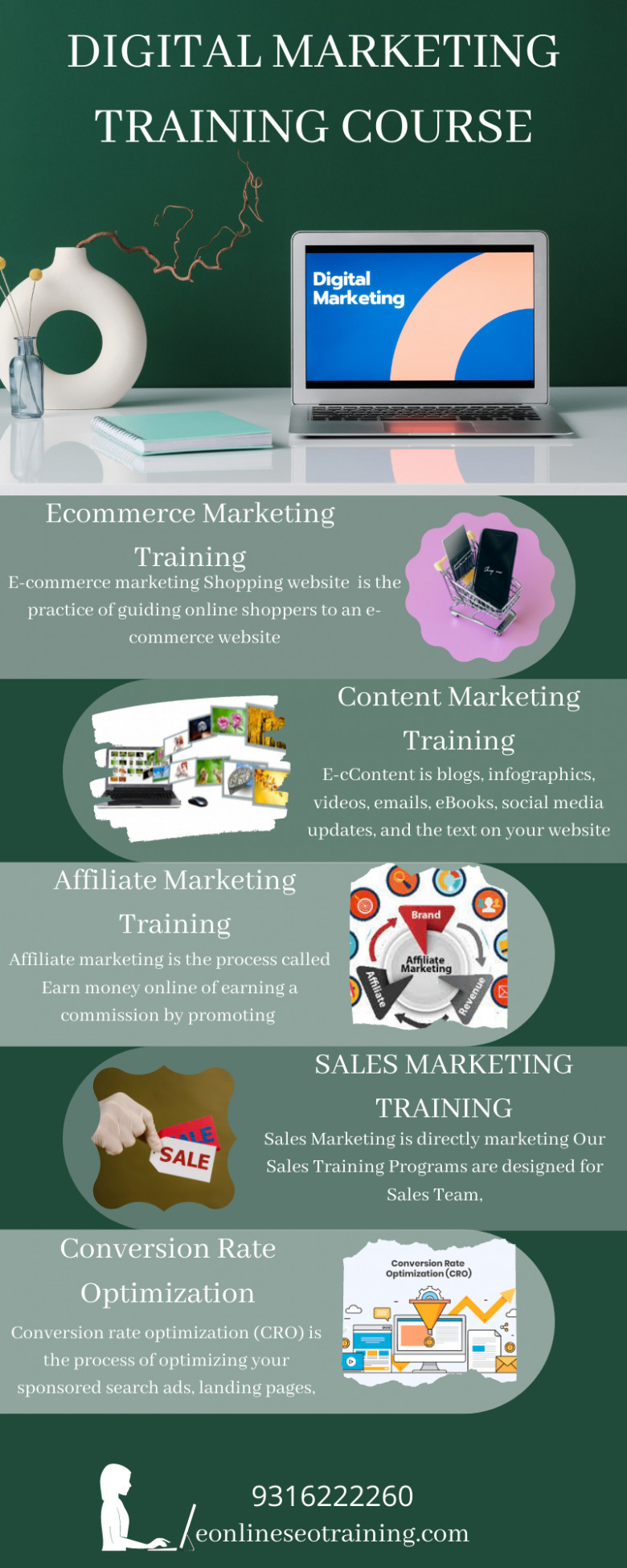 Digital Marketing Training combination of all type Internet marketing Training like social media marketing (SMM) Search Engine Optimization (SEO) Social Media Optimization (SMO) Search Engine Marketing (SEM) Affiliate Marketing , Video Marketing YouTube Marketing Training, Facebook Marketing Training Email Marketing. Click more info; https://eonlineseotraining.com/digital-marketing-course/