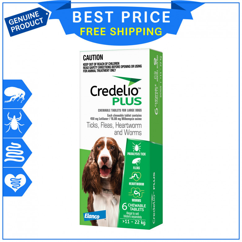 Credelio Plus provides reliable worm control as well as fast and long-lasting tick and flea protection. Credelio Plus is a tasty, beef-flavored monthly chewable tablet for dogs. We provide free shipping throughout Australia as well as low prices.