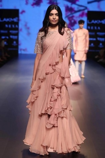 Ruffle Saree and Frill Saree both are latest trend of traditional Indian saree, now a days every celebrity wear Frill Saree on catwalk and other parties.