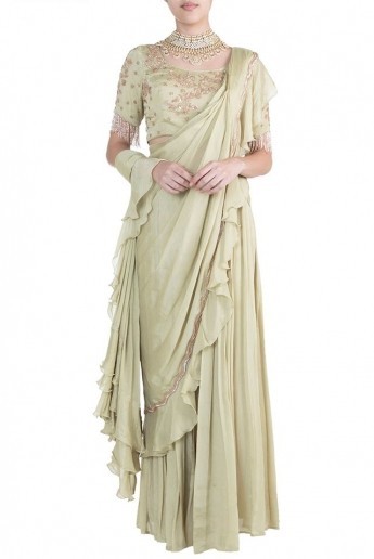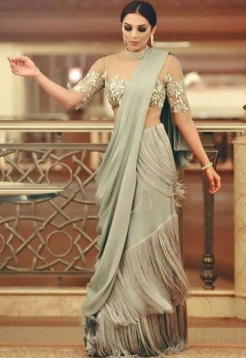 Ruffle Saree is latest trend of traditional Indian saree, now a days every celebrity wear Frill Saree on catwalk and other parties.