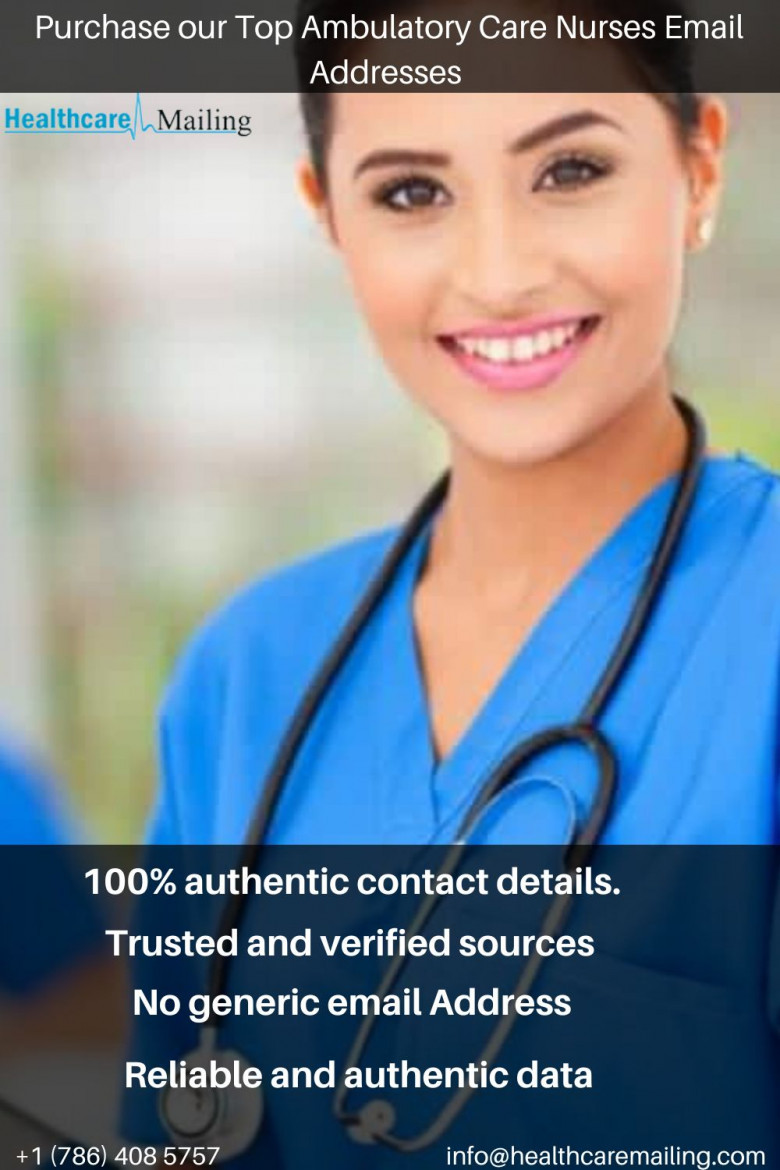 Our permission-passed and 100% Privacy Compliant Ambulatory Care Nurses Email List will increase your deliverability rates and guarantee a positive response from the purchase-intent leads. Our team consists of researchers with many years of experience collecting data from authentic sources and verifying them. They regularly update the Ambulatory Care Nurse Database and fill it with new contacts to give you an active and responsive list. Our segregated Ambulatory Care Nurses Email Marketing Lists are the most popular, followed by customized lists. The former gives you details of prospects based on location, while the latter is based on the data fields you select. We perform mundane data-cleansing tasks so that you can focus on your core business. We help you become time-efficient and cost-effective by delivering the Targeted Ambulatory Care Nurse Mailing List in CRM-friendly formats in 3-5 days. Browse our sub-lists-