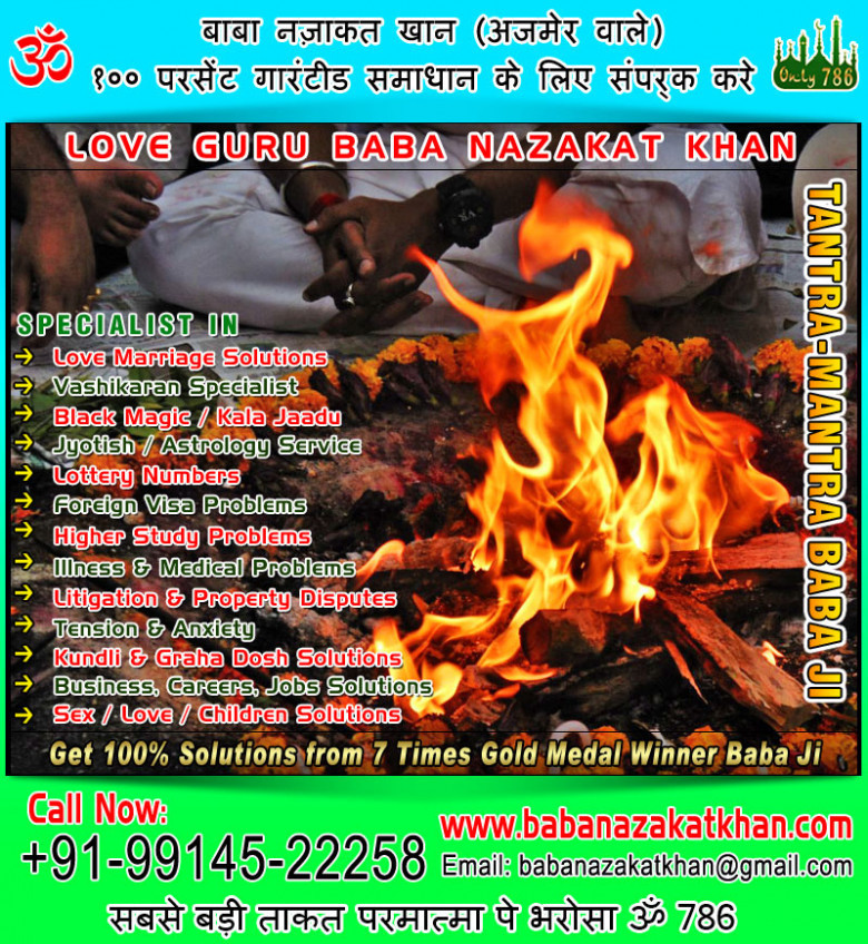 Vashikaran Specialist and Voodoo Black Magic Specialist Baba Nazakat Khan Ji is very famous because of his work has satisfied thousands of clients clients of India and Abroad from various countries like UK, Norway, Nepal, USA, Australia, Dubai, Canada, Newzealand, UAE, Kuwait, Dubai etc. Baba Nazakat Khan Ji is the winner of 10 times Gold Medalist provide various type of vashikaran like Love Vashikaran, Husband Vashikaran, Wife Vashikaran, Girl Vashikaran, Boss Vashikaran, Child Vashikaran, Enemy Vashikaran and also various type of services like Tona Totka Removal, Black Magic Removal Spells, Destroy Your Enamy Spells etc. And by the help of vashikaran you can also get your Love back just in 24 hour.