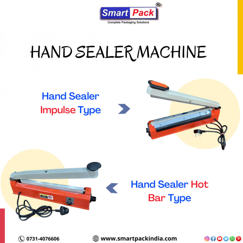 Hand Sealer As the name suggests- it is a simple and handy tool for different types of packaging material ranging from polyethylene and polypropylene bags to thermoplastic packages. This equipment is specialized in sealing food packaging material.