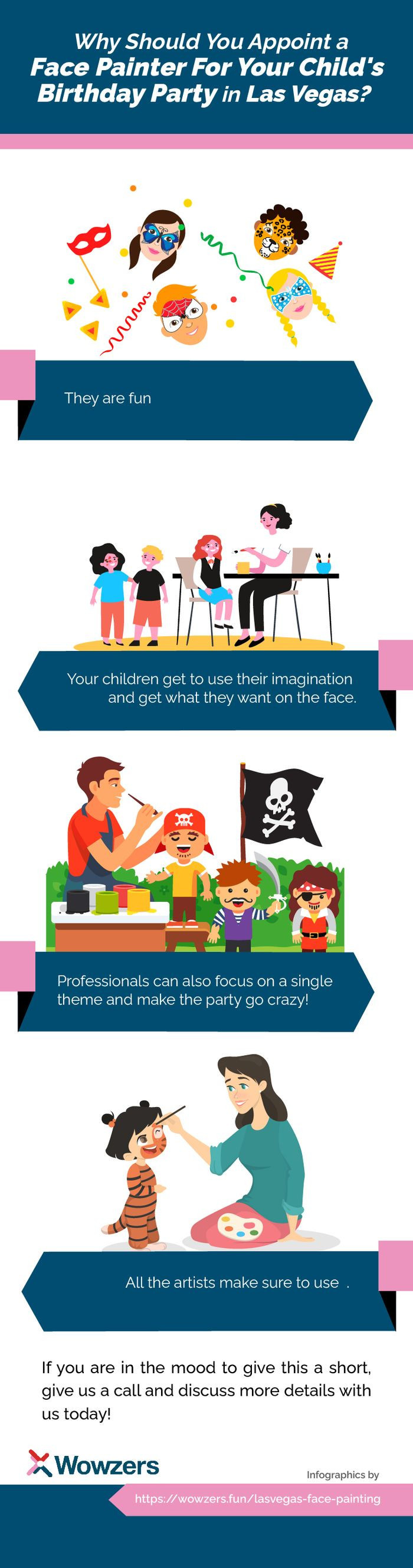 Las Vegas Face painting often reminds people of fairs and colorful carnivals! You must know that face painting is actually a real art form and that makeup artists use faces as their canvas to paint the best of what they can imagine. For more details, read this blog: https://wowzers.fun/blog/why-should-you-appoint-a-face-painter-for-your-childs-birthday-party-in-las-vegas
