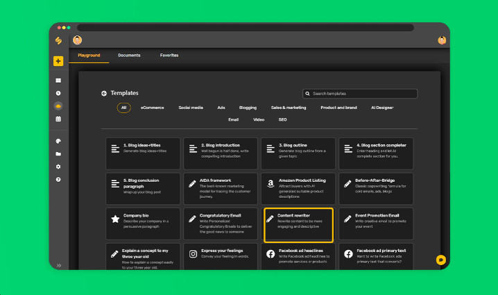 For a marketing game-changer, use Simplified's content rewriting best short form writer tool! The AI rephrase my sentence best short form writer tool instantly replaces outdated information with fresh, interesting copy. Change alter your writing style with 10+ tones to move from lighthearted to serious in a matter of seconds! Utilizing one-click tools is marketing magic!