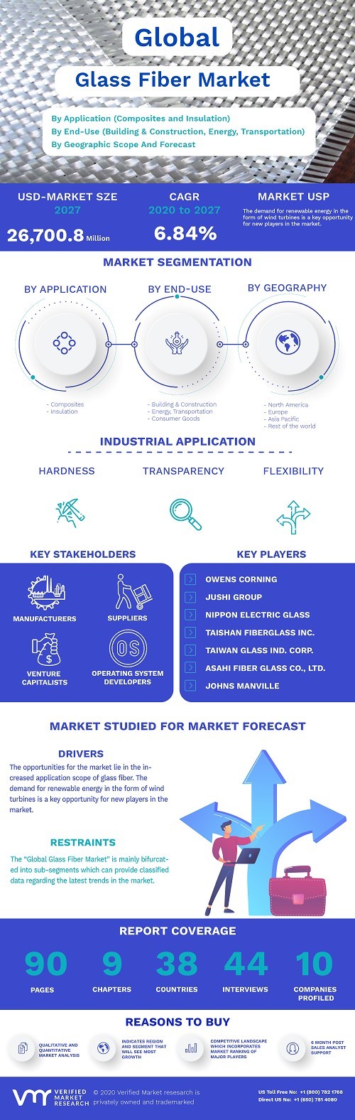 News Glass Fiber Market Size By Application, By End-Use Industry, By Geographic Scope And Forecast smithjenny22119 1,327 views Glass Fiber Market was valued at USD 16,261.4 Million in 2019 and is projected to reach USD 26,700.8 Million by 2027, growing at a CAGR of 6.84% from 2020 to 2027. « Previous Glass Fiber Market
