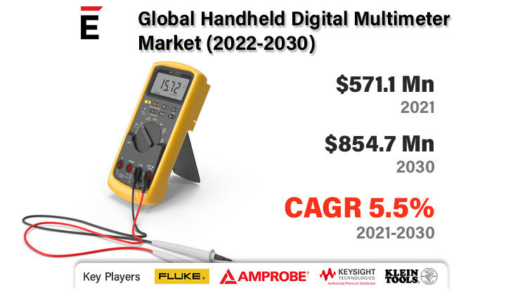 The global handheld digital multimeter market was valued at USD 571.1 Mn in 2021. The market is projected to grow USD 854.7 Mn in 2028, at a CAGR of 5.5%. A digital multimeter is a common diagnostic equipment for checking electrical values in an electrical device, such as voltage, current, and resistance. It has a display with buttons, a dial or rotary switch, and several input connectors where the test leads are plugged in. In addition, when compared to needle-based analogue metres, digital-variants have greater precision, dependability, and impedance. As a result, they're commonly utilised to diagnose electrical problems in industrial and residential devices like home appliances, motor controls, power supplies, and wiring systems. Digital multimeters are measuring tools that can measure voltage, current, and resistance among other things. Measured values are shown on a digital display, making them easy to interpret.
