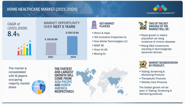 Home Healthcare market size is projected to reach USD 298.2 billion by 2026 from USD 198.9 billion in 2021, at a CAGR of 8.4%