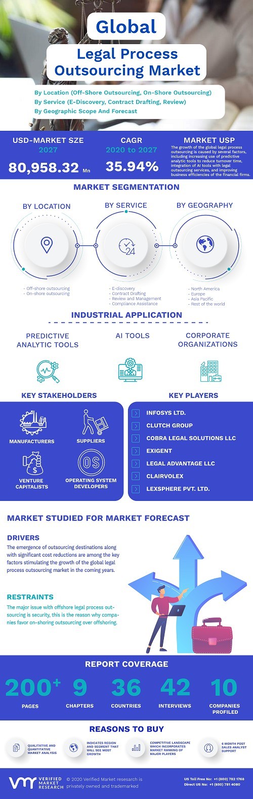 News Legal Process Outsourcing Market Size By Location, By Service, By Geographic Scope smithjenny22119 779 views Legal Process Outsourcing Market was valued at USD 6,678.36 Million in 2019 and is projected to reach USD 80,958.32 Million by 2027, growing at a CAGR of 35.94% from 2020 to 2027. « Previous Legal Process Outsourcing Market