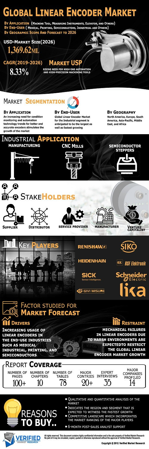 News Linear Encoder Market smithjenny22119 1,000 views Linear Encoder Market was valued at USD 731.22 Million in 2018 and is projected to reach USD 1,369.62 Million by 2026, growing at a CAGR of 8.33% from 2019 to 2026. « Previous Linear Encoder Market