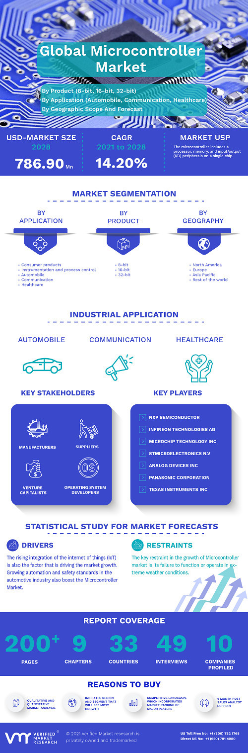 News Microcontroller Market Size By Product (8-bit, 16-bit, 32-bit), By Application, By Geographic Scope And Forecast smithjenny22119 842 views Microcontroller Market size was valued at USD 310.56 Million in 2020 and is projected to reach USD 786.90 Million by 2028. « Previous Microcontroller Market