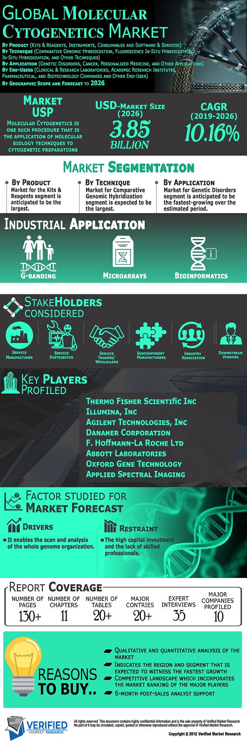 According to Verified Market Research, The Global Molecular Cytogenetics Market was valued at USD 1.95 billion in 2019 and is projected to reach USD 3.96 billion by 2027, growing at a CAGR of 10% from 2020 to 2027.